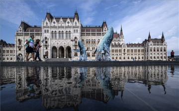 Életnagyságú bálnaszobrok figyelmeztetnek a műanyagszennyezésre a Parlament előtt