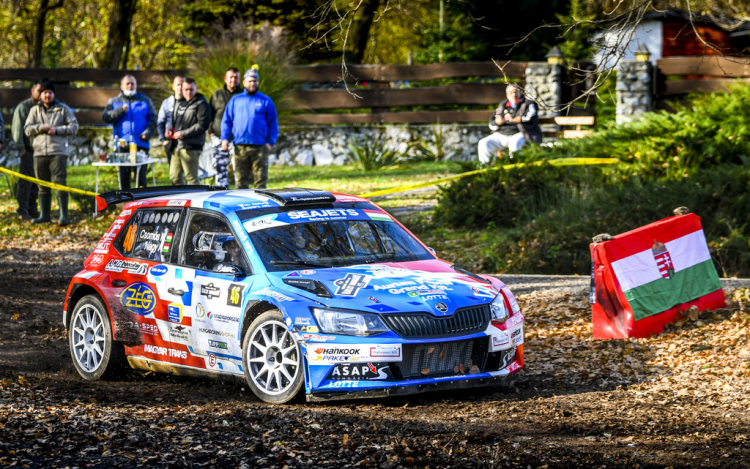 Ahhoz, hogy tudjuk folytatni a versenyzést a Korda Racing segítségét kellett igénybe vennünk, alkatrészt adtak nekünk a javításhoz, amiért óriási köszönettel tartozunk Korda Eriknek. A gátlóproblémák miatt jókora hátrányban futottunk neki a többiekhez képest, a nekünk már teljesen sötétben megrendezett második körnek. Ezt az ERC élmezőnye még nagyjából világosban abszolválta. Vasárnap reggelre valóban sikerült átlendülnünk minden rosszon, tét nélkül, fantasztikus eredménnyel kezdtük a napot. Az ERC mezőnyében abszolút második időt autóztunk Erdőbényén. A következő szakasz rajtjában biztonsági okokra hivatkozva kérvényeztük a két percre történő rajtolást az előttünk indulókhoz képest. Előttünk egy kétkerék meghajtású Abarth indult és már az előző, rövidebb pályán is majdnem utolértük. Nem hagyták jóvá a kérésünket. A saját időnkben rajtoltunk és hamar beigazolódott, amitől tartottunk. Utolértük az Abarth-ot és amikor kb. 100 méterre jártunk tőle, akkor váratlanul megdobált minket kavicsokkal, ezek pedig betörték a szélvédőnket. Ezzel a vasárnapot is elbuktuk, el kellett emelni a gázpedált, nem akartunk még nagyobb kárt csinálni. A versenyt abszolút elengedtük, és amiatt, hogy kizökkentünk a saját ritmusunkból a következő szakaszon még az árokba is becsúsztunk. A Skodánk megsérült, így annak ellenére, hogy itthon versenyezhettünk az európai élmenők között mégsem sikerült jó szájízzel zárni a Rally Hungary-t. Sokat vártunk önmagunktól, ami csak részben valósult meg, összességében sajnos ki kell mondanom azt, hogy csalódottak vagyunk. Egyszer fent, egyszer lent. Igazi hullámvasút volt ez a futam nekünk, mert a kiugróan szép eredmények mellé váratlan pofonok is társultak.