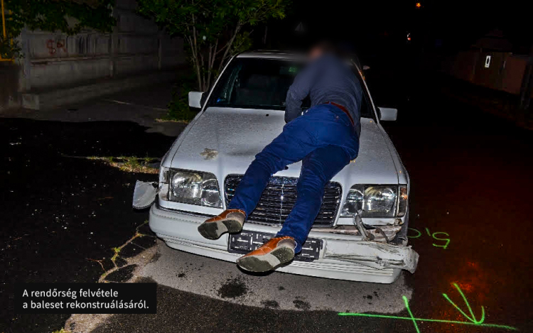 A balesetet okozó ittas férfi elütötte, majd 55 méteren át vitte a motorháztetőn a vétlen sofőrt, mert az vissza akarta tartani.